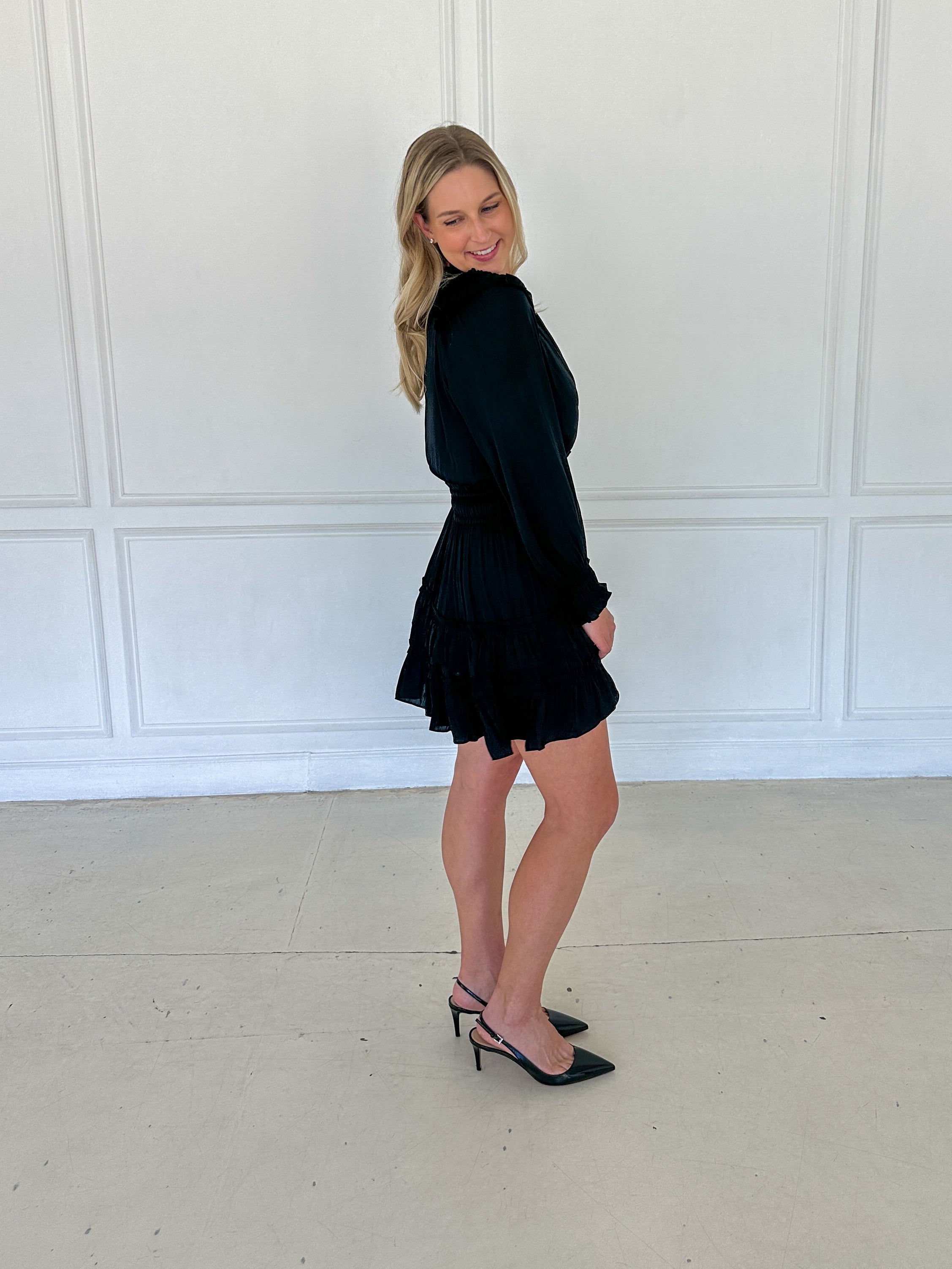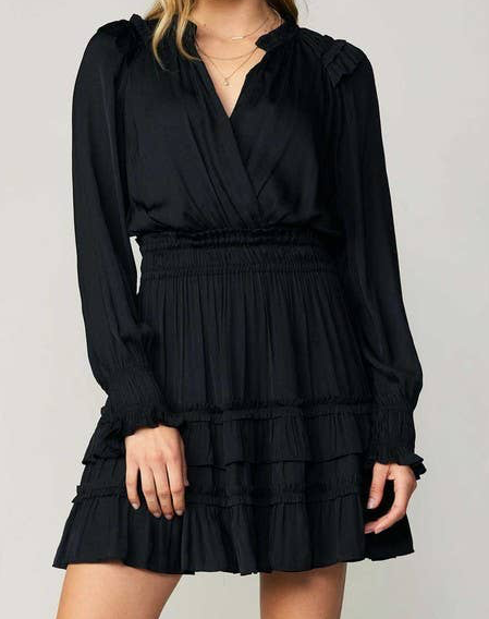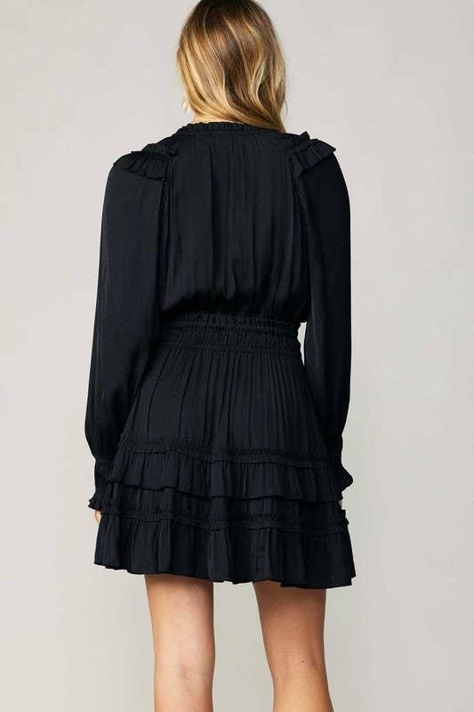 Ruffled Surplice Black Mini FINAL SALE