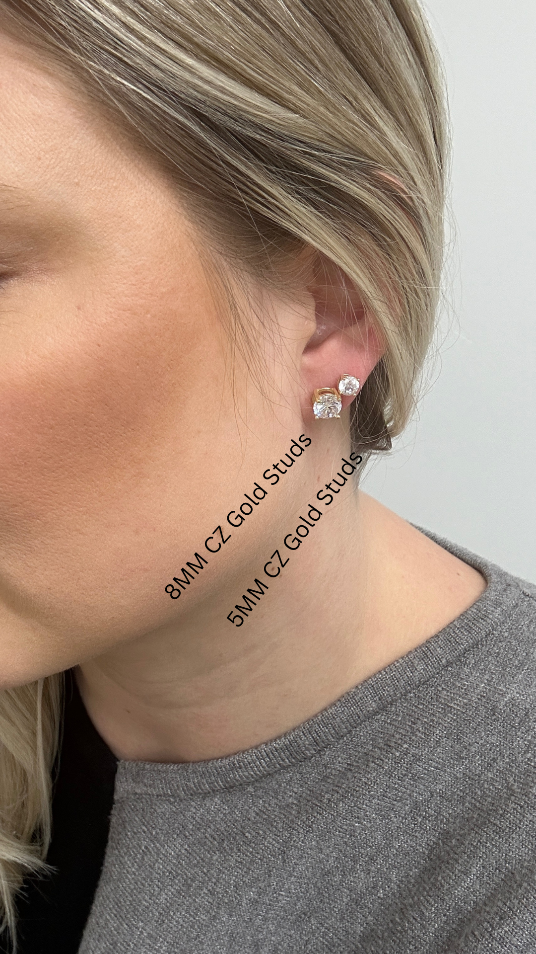 CZ Studs 8mm- Gold