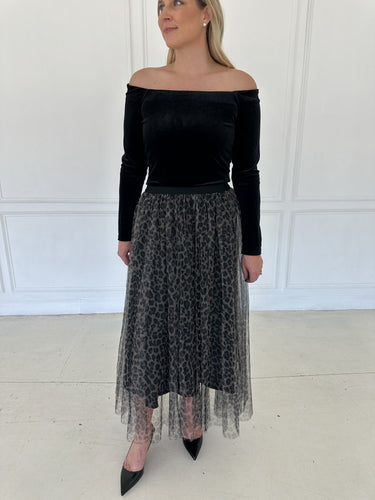Elevate your wardrobe with this Leopard Tulle Skirt, featuring a fully lined design and comfortable elastic waistband for easy wear. Its versatile style lets you dress it up for festive occasions or keep it casual for everyday elegance. Perfect for celebrating the holidays with flair and comfort. S-L