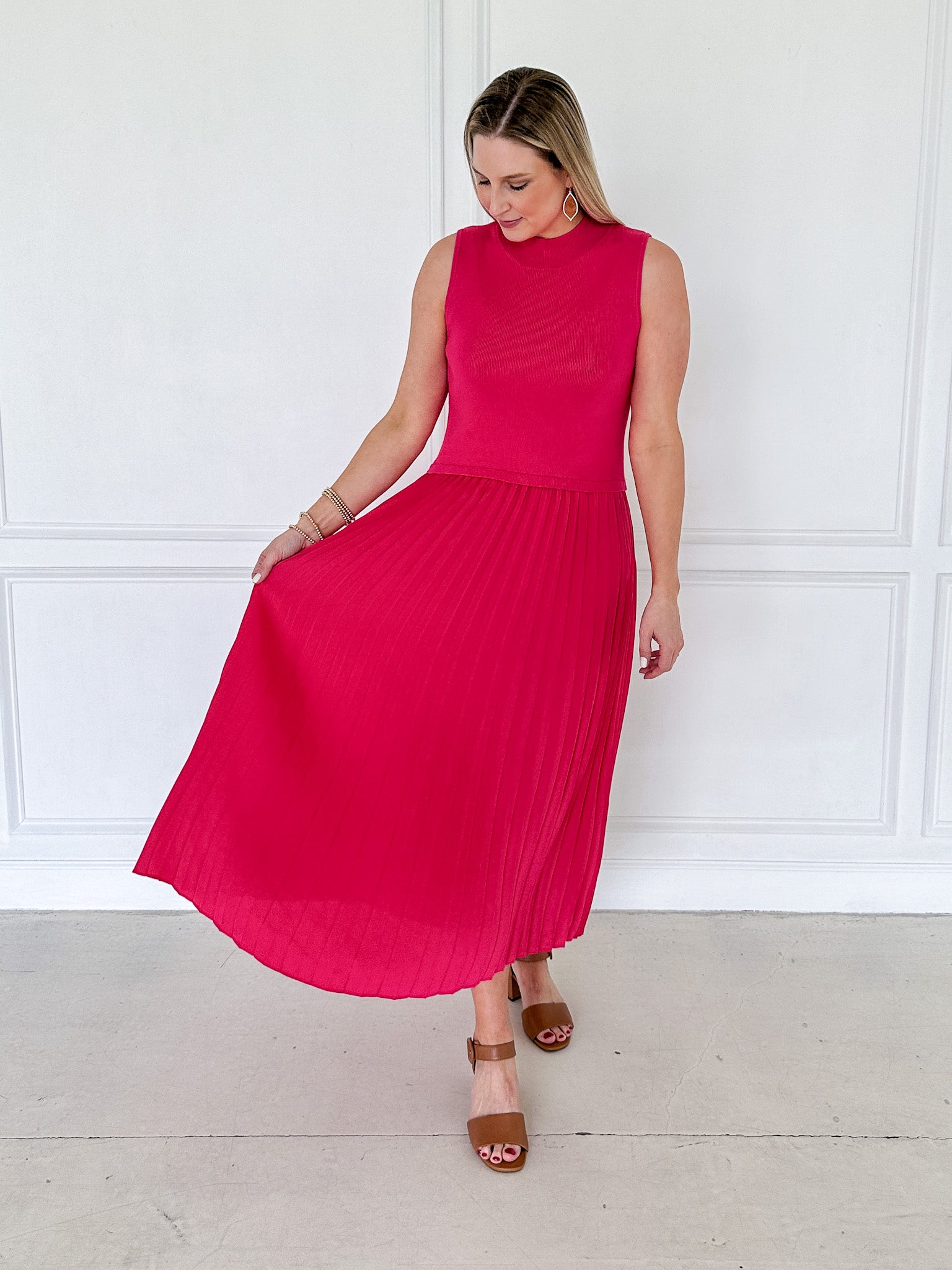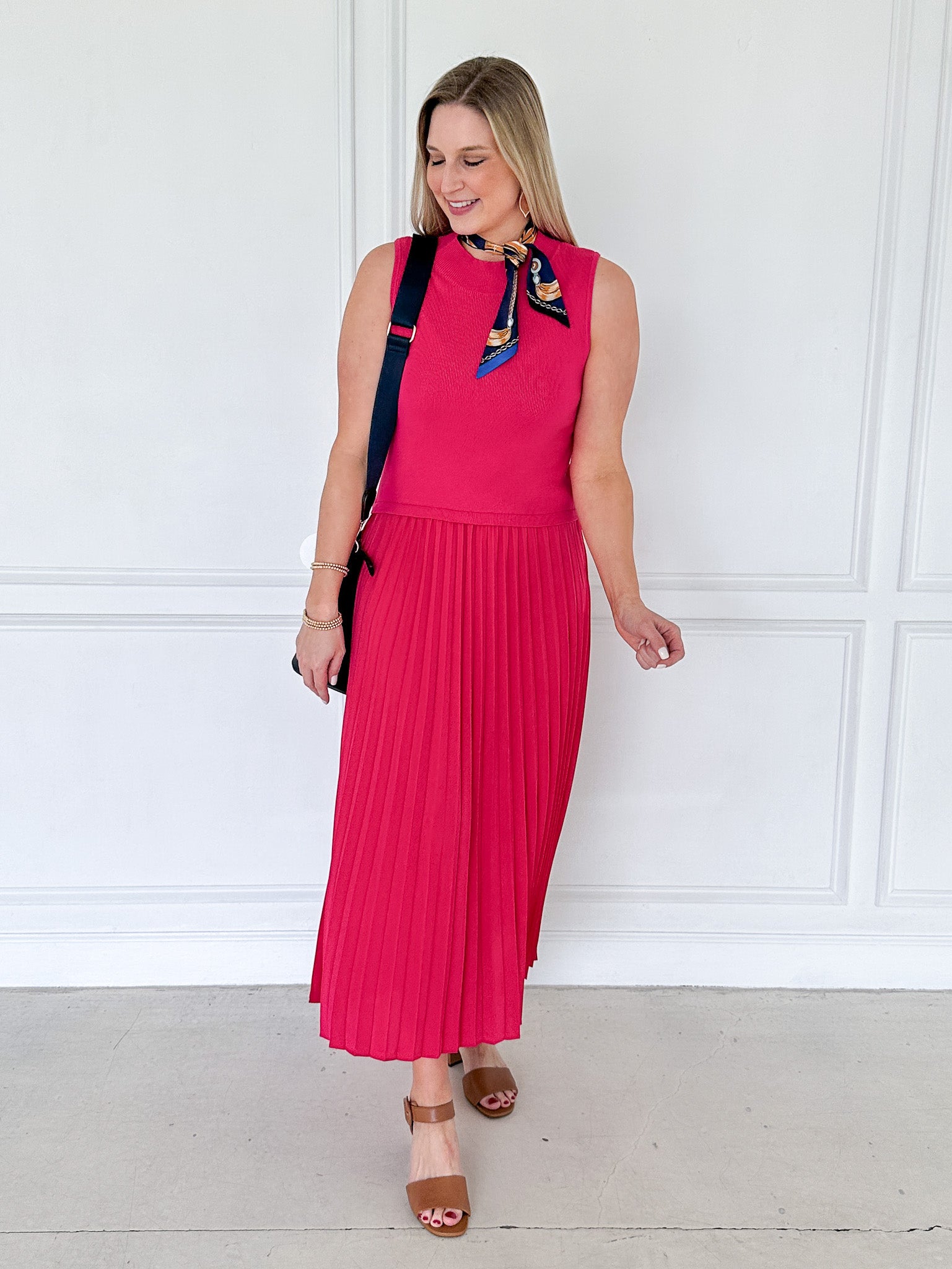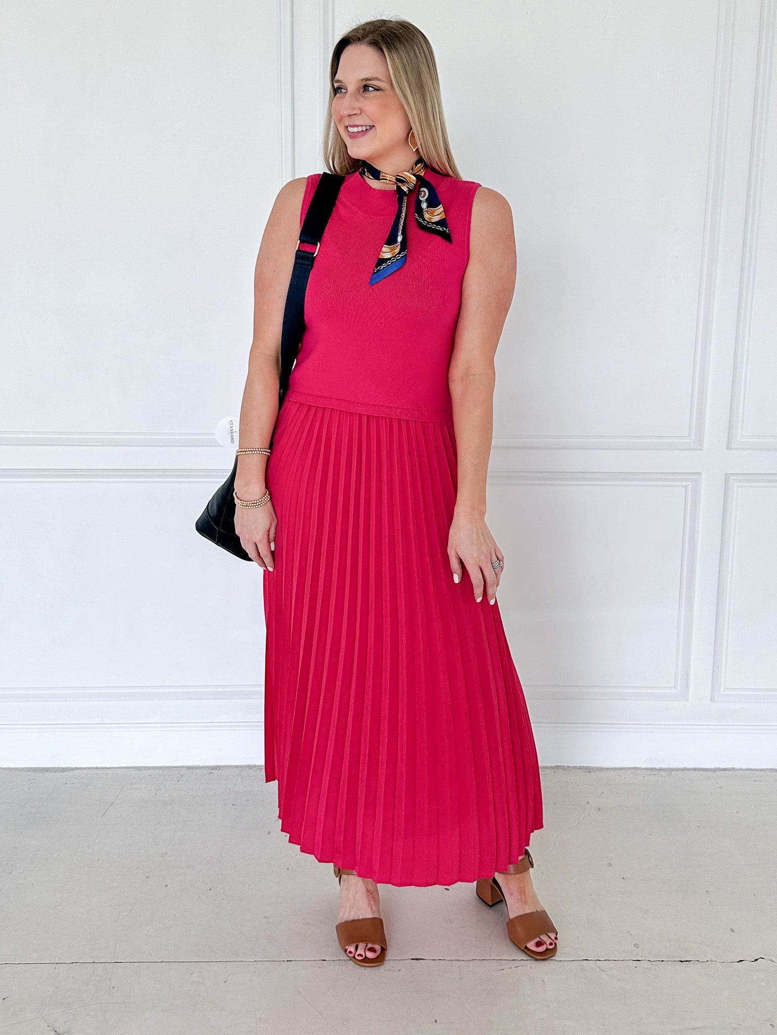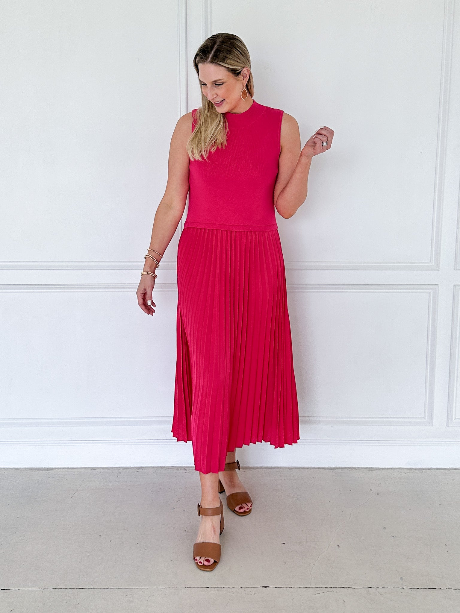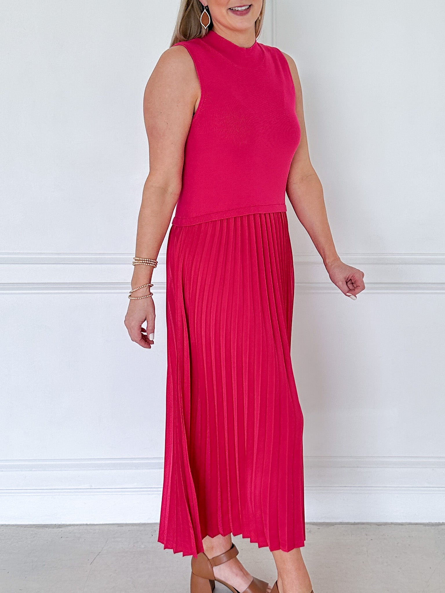 Meet your new go-to for effortless femininity. The Pink Pleated Contrast Midi is a playful yet polished dress that turns heads with its flirty pleated skirt and eye-catching contrast detailing. Whether you're brunching with friends or dressing up for a special occasion, this midi strikes the perfect balance between sweet and sophisticated.